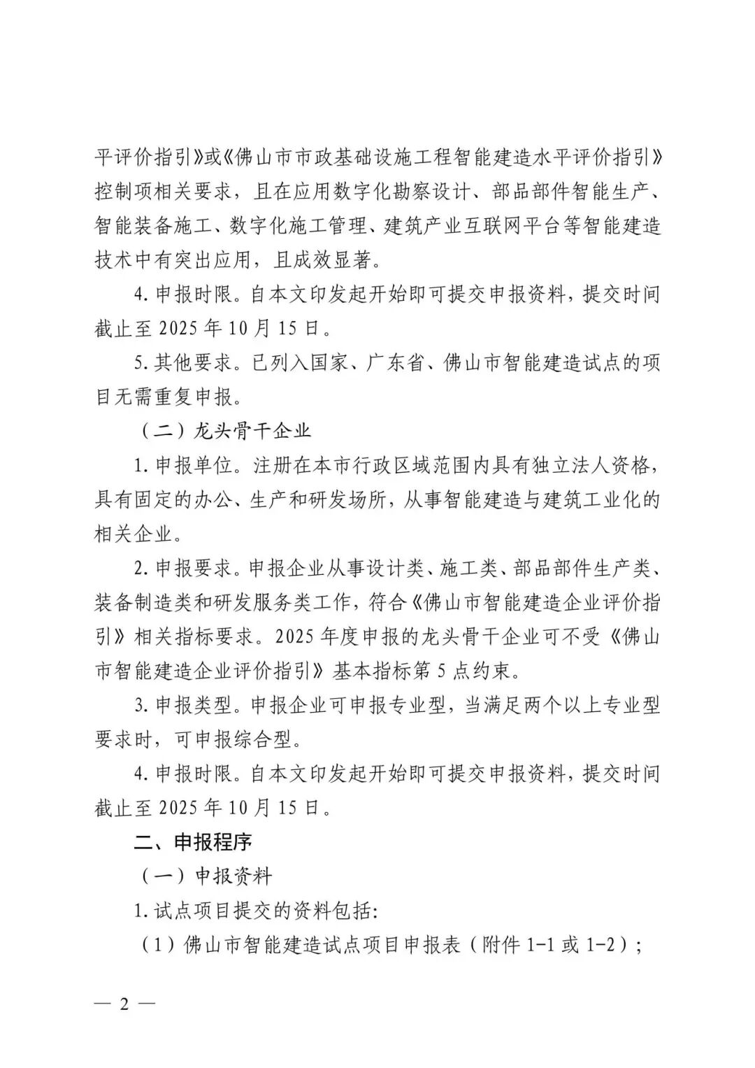 接最新通知2025年度佛山市智能建造试点项目、龙头骨干企业及智能建造技术新产品创新服务案例征集申报截止时间均提前至2025年9月19日12:00截止。